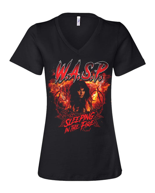 W.A.S.P. "Sleeping In The Fire" Ladies Black V-Neck T-Shirt